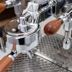 It may be little, but it’s anything but a wimp. The electrically heated group offers some essential temperature stability, and the double manometer on the front of the machine is convenient for monitoring your extraction. The rosewood accents offer a more distinguished look.