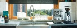 Plus, the BZ10 grouphead is up to temp in ten minutes, where an E61 can take twenty minutes or more. Anything that delivers caffeine faster is excellent in our book. Steaming can be done at the same time as brewing, due to the heat exchange design, and both steam and brew pressures can be monitored on the BZ10’s dual needle gauge.