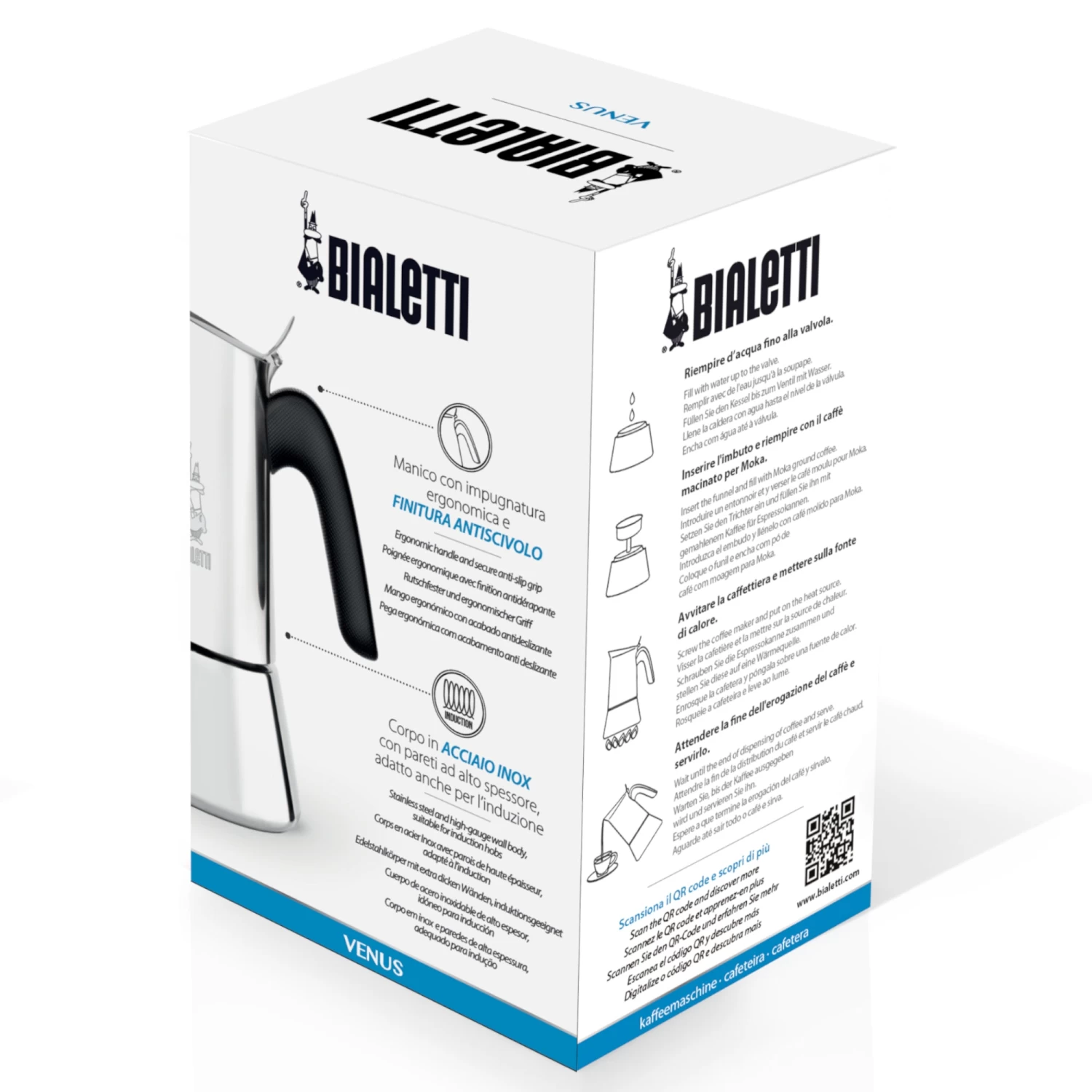 The Bialetti Venus is suitable for use on gas, electric, ceramic, and induction ranges.