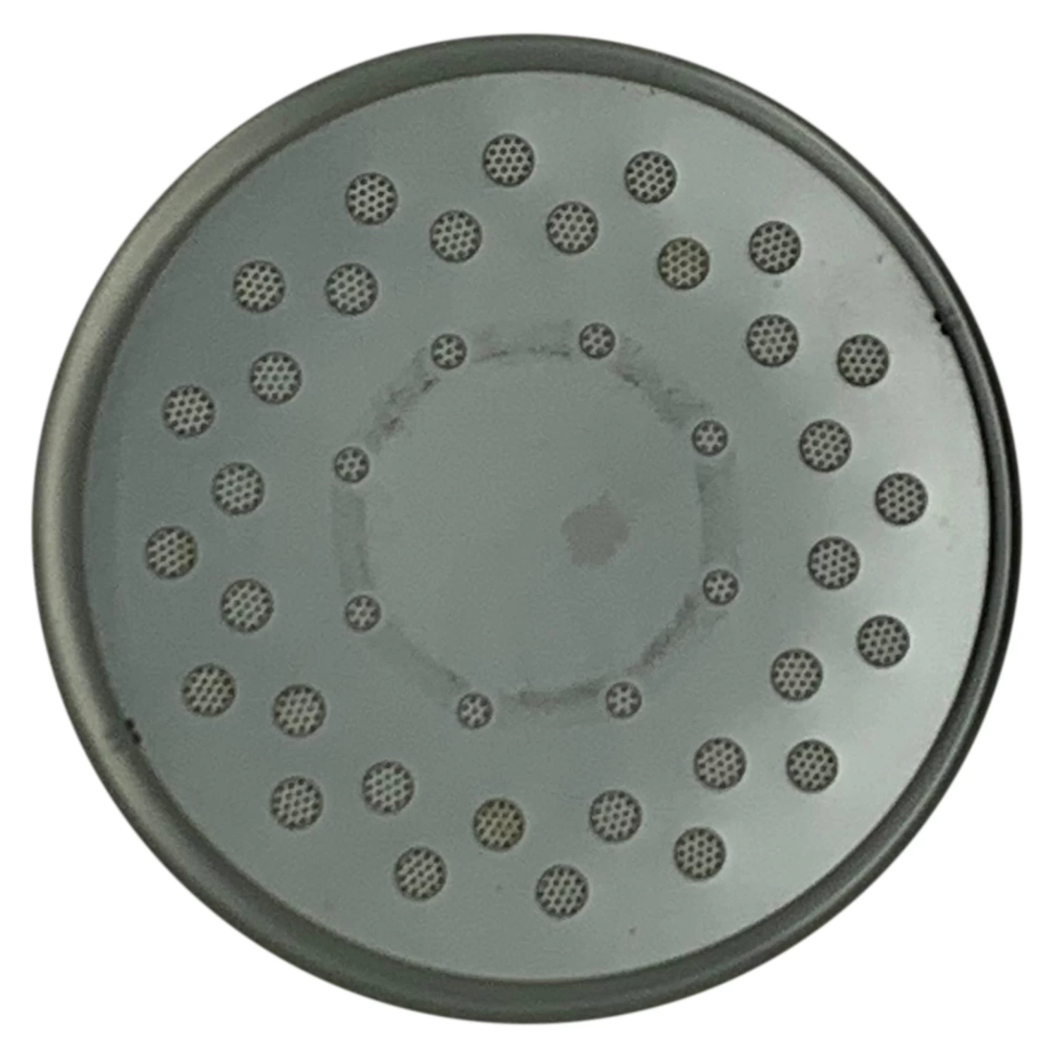 Designed with a significant redistribution and reduction of surface holes, the screen seeks to address the issue of puck degradation that can occur as a result of water forming an aggressive stream in the center. This is often caused by the presence of the shower diffuser screw. By placing a small grouping of holes near the otherwise bald center of the screen, and a wider distribution around the outer edge.