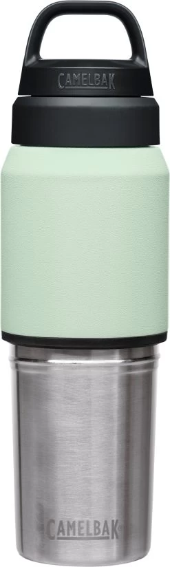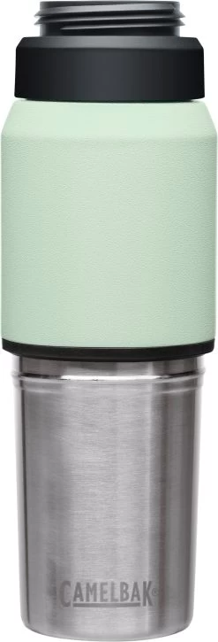 The Camelbak Multibev 17 oz/12 oz, is the ultimate beverage multitasker. Featuring a 17 oz water bottle with a detachable 12 oz travel cup, the Multibev is perfect for both solo and shared enjoyment of coffee and tea.Â