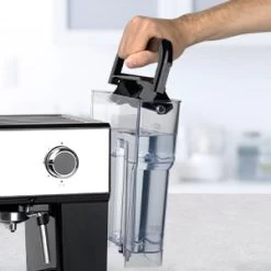 Other features that Capresso thought to include for the Cafe TS include an internal system that generates 15 bars of pressure, a 50 oz water reservoir, and a cup warmer on the top of the machine. A 15 bar pump means that you can ensure your espresso shots are fully extracted and your milk is being steamed as effectively as possible for creamy milk-based drinks. The water reservoir is designed to be as easy to fill as possible with an integrated handle that make it simple to remove the reservoir and refill it before placing it back on the machine. In addition, a coffee scoop and tamper are included in the box so you’ll be ready to brew as soon as your espresso machine is out of the box.