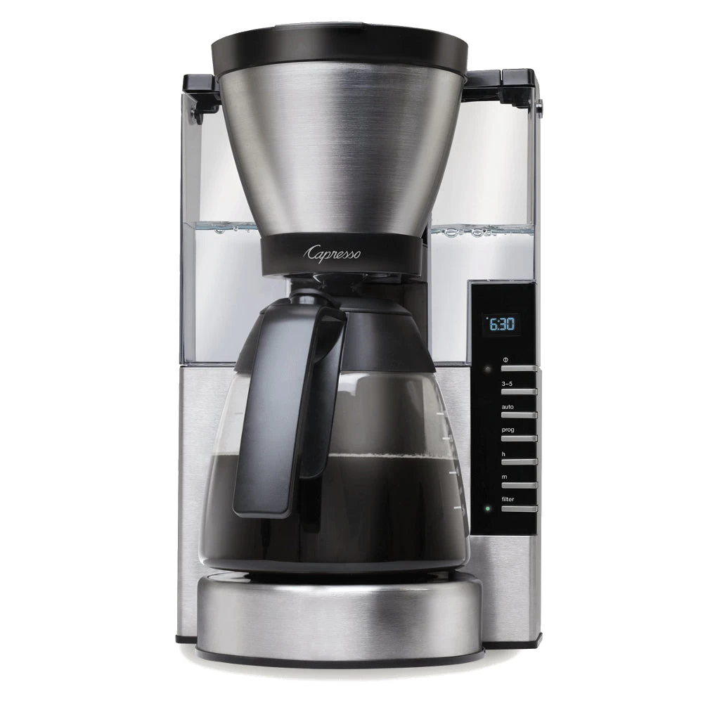 An upgrade to Capresso’s MG600 coffee maker, the MG900 features an updated LED Clock/Timer, a redesigned control panel, and a transparent water reservoir. Housed in elegant stainless steel, the MG900 can brew up to 10 cups of coffee in less than 7 minutes. You can program the timer to have the MG900 power on and brew at a time of your choosing. To extend the lifespan of your machine and protect the flavor of your coffee, the 50 oz water reservoir can be fitted with a charcoal water filter to filter up to 82% of impurities. The filter is actively monitored once installed and the coffee maker will alert you to change it once enough pots of coffee have been brewed.