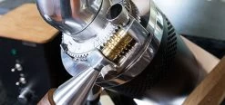 The heroism doesn’t stop there, however. You can make infinitesimal grind adjustment with the E37Z-Hero’s interlocking worm gear, which can be unlocked and removed to make large macro adjustments should you ever feel the need to switch between brew methods. To that end, you can expect minimal time and coffee wasted while dialing in. The control box houses the rest of the magic, letting you start and stop grinding, toggle the cooling fan, and adjust the RPM of the burrs (a particularly fascinating surprise for us). As a nice, final touch, the portafilter hook beneath the dispensing chute can be easily removed to make room for various pour-over devices.