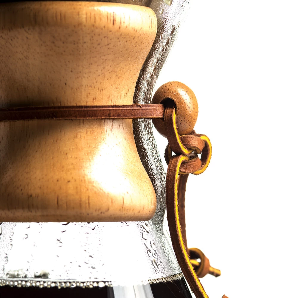 A replacement rawhide tie and wooden bead for the wood collar of the Chemex Classic coffee maker.
