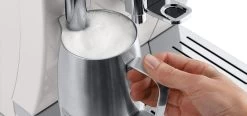 The standout feature of the Dinamica is its patented TrueBrew Over Ice technology. It’s the world’s first automatic espresso machine to offer a recipe for iced coffee, and we’re happy to say it really works. The Dinamica delivers a smooth, full-bodied iced coffee that’s never watered down. De’Longhi achieves this through a combination of a lower brewing temperature, preinfusion, and a customized recipe just for iced coffee.