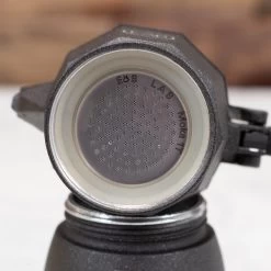 The Competition Moka Filter has a stainless steel, photo-etched membrane with 200 μm filtering capacity and consists of many smaller 0.2 mm holes and a few traditional 0.8 mm holes. This allows for better retention of fine coffee particles and results in a cleaner, more balanced and less bitter cup of coffee. It also reduces the pressure of the water, which prevents damage to your coffee while in the filter.