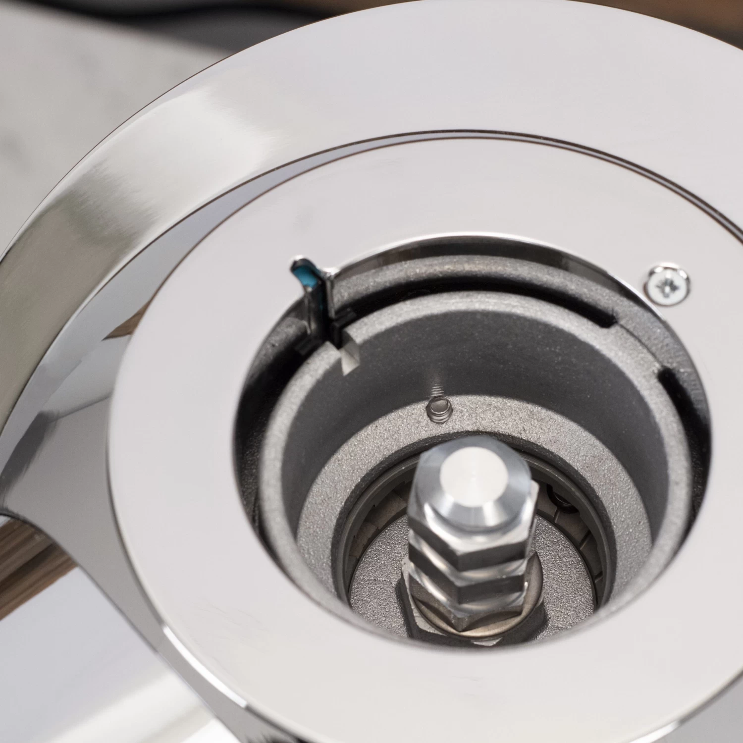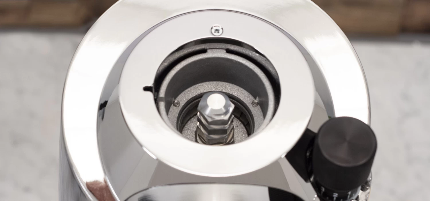 Maintenance is possibly the easiest it’s ever been on a grinder thanks to the bean hopper security system. When the hopper is removed, the system is powered down. Simply lift the lid to access the grinding chamber, which is held in place with several screws.