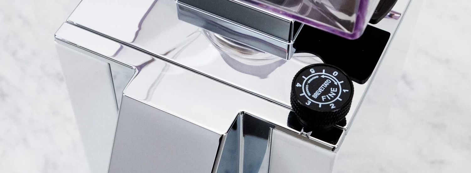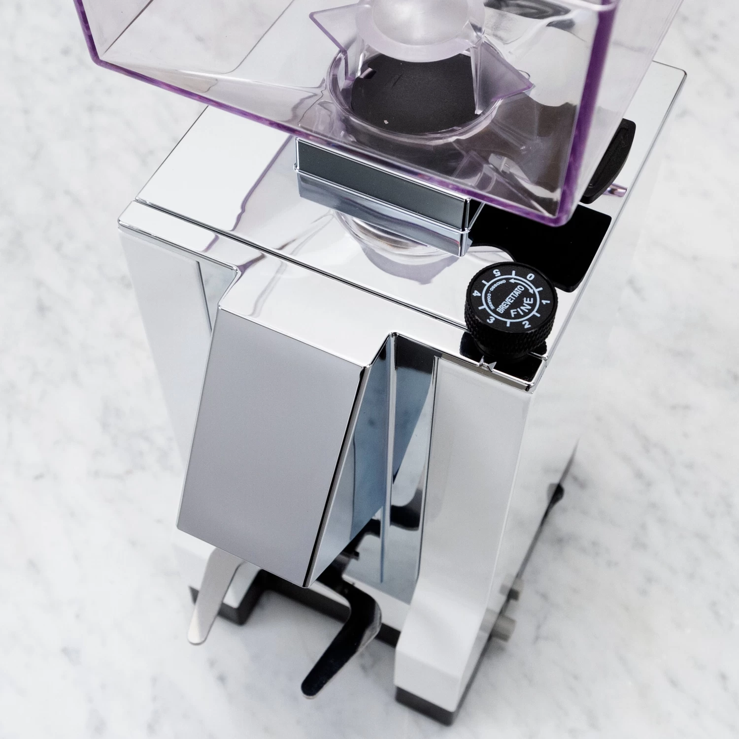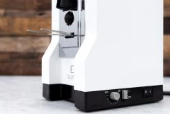 For performance, it’s equipped with 50 mm flat hardened steel burrs and a strong 1350 RPM motor. Eureka’s ACE system helps prevent clumping by eliminating static in ground coffee, which in turn ensures dose consistency.