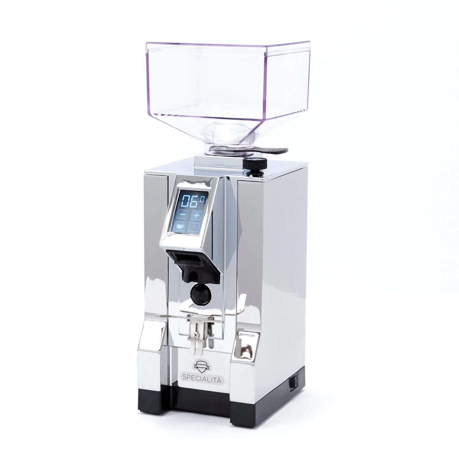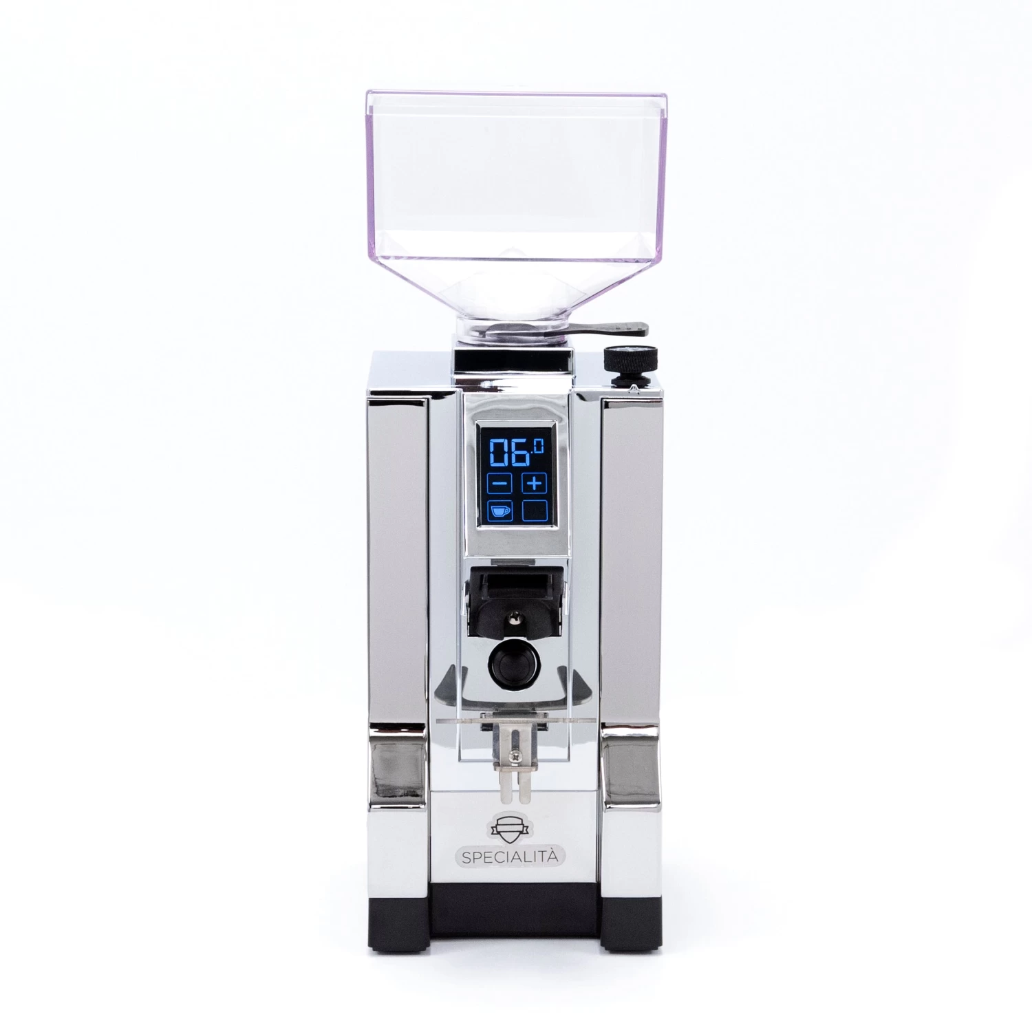 The Eureka Mignon Specialità is an all purpose grinder with 55 mm flat hardened steel burrs that give it the highest output in Eureka’s Mignon range. The touch screen display is a stand out feature for a grinder so small, making adjustment as easy as it should be. With its larger burrs, the Mignon Specialità can produce up to 1.8g of coffee per second for espresso, meaning it can produce a barista quality 18g double shot in as little as 10 seconds.