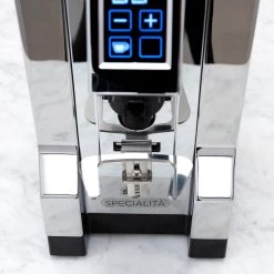 For performance, it’s equipped with 55 mm flat hardened steel burrs and a strong 1350 RPM motor with an output of 1.4 – 1.8g/s for espresso and 1.9 – 2.5g/s for brew. Eureka’s ACE system helps prevent clumping by eliminating static in ground coffee, which in turn ensures dose consistency.