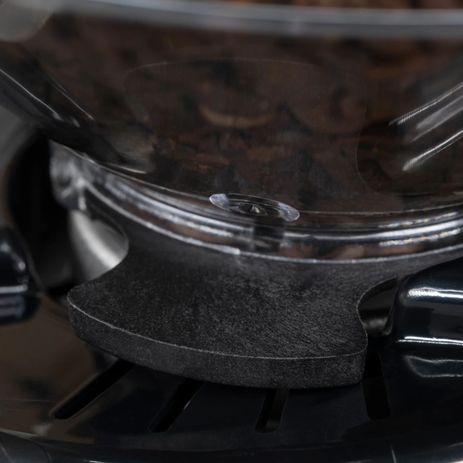 As a commercial-grade machine, precision and reliability are important, but convenience is as well. Eureka gets the details right with the Olympus 75 NEO with an adjustable hands-free fork to hold your portafilter, a spotlight so you can clearly see what you’re grinding, and a bean hopper that holds 1.2kg of coffee. Eureka’s high-speed maintenance is also present on this machine, so you can easily open the top of the machine to perform repairs and routine maintenance. In addition, since the stepless micrometric adjustment only moves the bottom burr, you won’t have to readjust your burrs to get back to the same settings after opening the machine to perform maintenance.