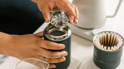 The Fellow Carter Move Mug is the go-to travel mug for anyone who needs coffee for their commute. The Carter Move Mug features Fellow’s iconic rounded design, along with a snap-in splash guard to keep coffee contained while in motion, a tapered lip resembling a Cabernet glass for easier drinking, and a ceramic coating on the interior to keep odors, oils and metallic tastes out of your coffee. A 270° twist of the lid locks it in place, and the leak-proof seal eliminates any worry of creating a mess. The heat-lock double wall vacuum uses 304 18/8 insulated stainless steel to retain heat for 12 hours, or can keep contents cold for 24 hours.