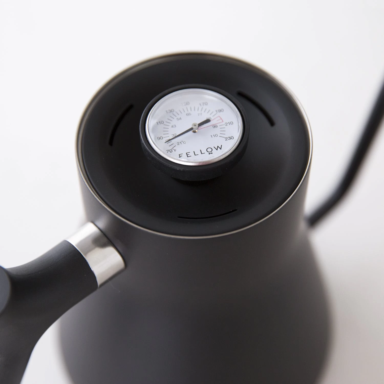A built-in thermometer highlights the ideal brew range between 195 and 205 degrees Fahrenheit, and the counterbalanced handle shifts the weight of the kettle toward your hand for easier handling. Most importantly, the precision pour spout is designed for a slow, steady pour.