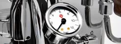 Additionally, the machine can be run with the included 2.5L water reservoir, or can be plumbed in directly to a water line. A truly unique aspect of this setup is that the water reservoir can be moved to any of the side or back panels to suit your spacing needs. The included anti-burn steam and hot water wands are multidirectional so they can accommodate just about any cup or mug size, and operated by responsive and tactile knobs with spring closure. External pressure gauges for steam, the pump, and group head and also included.