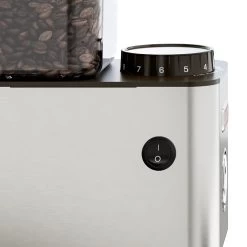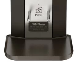 Grinding and does selection on the William are controlled via a microswitch located behind the panel below the grinds chute. To accommodate portafilters of different shapes and sizes the top pin is height adjustable while the chute can be adjusted to change the angle at which coffee is dispensed into the portafilter. Atop the grinder, the William’s hopper holds up to 12.3oz of whole bean coffee and is sealed with a heavy metal lid.