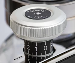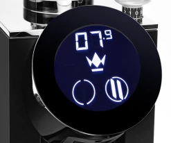 Grind adjustment is managed by the stepless micrometric regulation system, allowing users to to make incredibly precise adjustments with the comfortable knob to the right of the display. Because the top burr is stationary, when opening the Newton 55 for regular maintenance, your grind setting is preserved. This eliminates the need for dialing your grinder back in. Single and double doses can be programmed within 1/10th of a second via the touch display; you can also lock your doses to prevent accidental changes, as well as grind continuously using the manual “Extra Dose” mode.