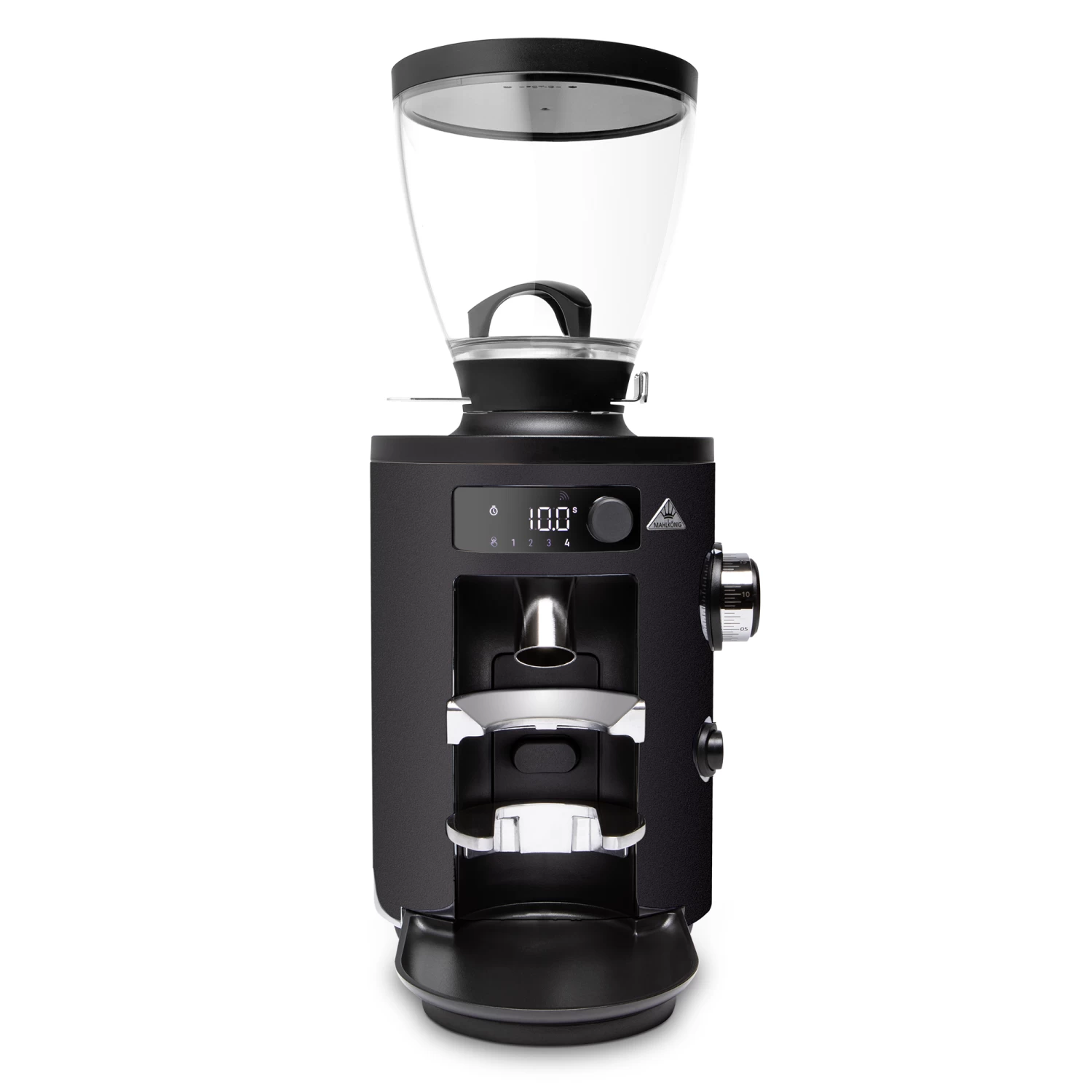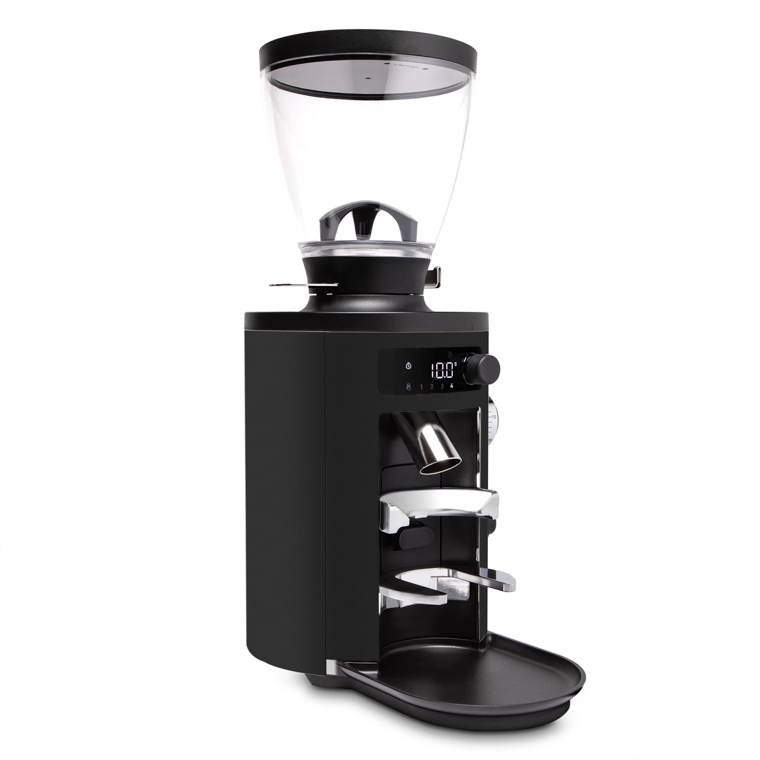 The Mahlkonig X54 Allround Home Coffee Grinder is a thoughtful and powerful option when considering a grinder for all brew methods. Its 54mm flat steel burrs can be dialed in from cold brew coarse to espresso fine via the stepless adjustment knob and the front of the grinder features two swappable attachments for portafilter and dosing cup grinding. Tech savvy users will also appreciate the Mahlkonig app. By connecting the X54 to your home WiFi it can sync with the app for guided tutorials on dialing in and the ability to save and share grinding recipes and to assign them to one of the four timed grinding profiles.