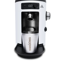 The Mahlkonig X54 Allround Home Coffee Grinder is a thoughtful and powerful option when considering a grinder for all brew methods. Its 54mm flat steel burrs can be dialed in from cold brew coarse to espresso fine via the stepless adjustment knob and the front of the grinder features two swappable attachments for portafilter and dosing cup grinding. Tech savvy users will also appreciate the Mahlkonig app. By connecting the X54 to your home WiFi it can sync with the app for guided tutorials on dialing in and the ability to save and share grinding recipes and to assign them to one of the four timed grinding profiles.