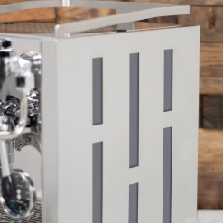 The Pathfinder modernizes traditional espresso machine design, favoring a super compact shape, a clean appearance, and practical features. Equipped with flow control, you can truly unlock the power of this machine, enabling you to alter the flow rate of water as it hits the coffee bed. By doing so, you can extract different flavors from the coffee that you might otherwise never get to experience. At the heart of the machine is a 60.8 oz stainless steel HX boiler heated by a powerful 1400W heating element, offering a quick 15 minute heat up time, and the ability to brew and steam at the same time. Because of the incredible heating element, you can expect higher steam pressure and fast steam recovery, useful for when lattes and cappuccinos are in high demand. High quality copper tubing delivers water throughout the system, and everything is mounted on an INOX 304 steel frame. On the bottom of the machine, you’ll find a panel that can be removed for quick access to the heating element connections.