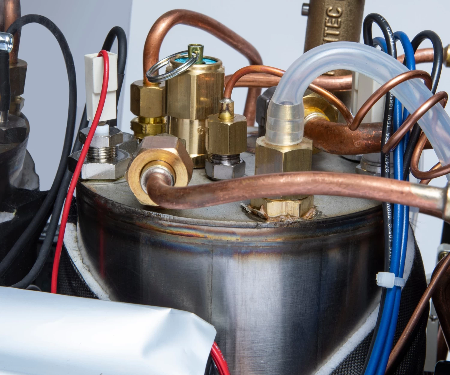 The 1.6-liter stainless steel boiler on the Pro 400 is made of stainless steel, which allows for a durable heating element that will evenly heat up for your morning brew. The heat exchanger boiler can brew and steam at the same time, and you can also quickly and easily dispense hot water through the separate hot water wand.