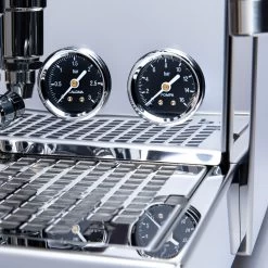 In combination with the engineered thermosyphon system in the E61 group, the Pro 500 PID with Flow Control lends a level of temperature stability previously unheard of in a heat exchanger espresso machine. The need for cooling flushes is eliminated, removing a considerable limitation from this class of espresso machine. When set to a temperature of 256° Fahrenheit, pressure stabilizes for near indefinite steaming while eliminating the necessity of a cooling flush under most circumstances.