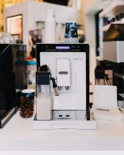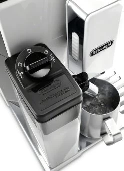 The DeLonghi Eletta Cappuccino ECAM 44660WÂ features clean white paneling, programmable specialty brewing, and a modest price tag. The DeLonghi Eletta Cappuccino elevates the standards for home super-automatics. The intuitive touch metal display will have you programming custom one-touch beverages with ease while the Lattecrema system dispenses beautifully frothed milk for lattes, macchiatos, and more.