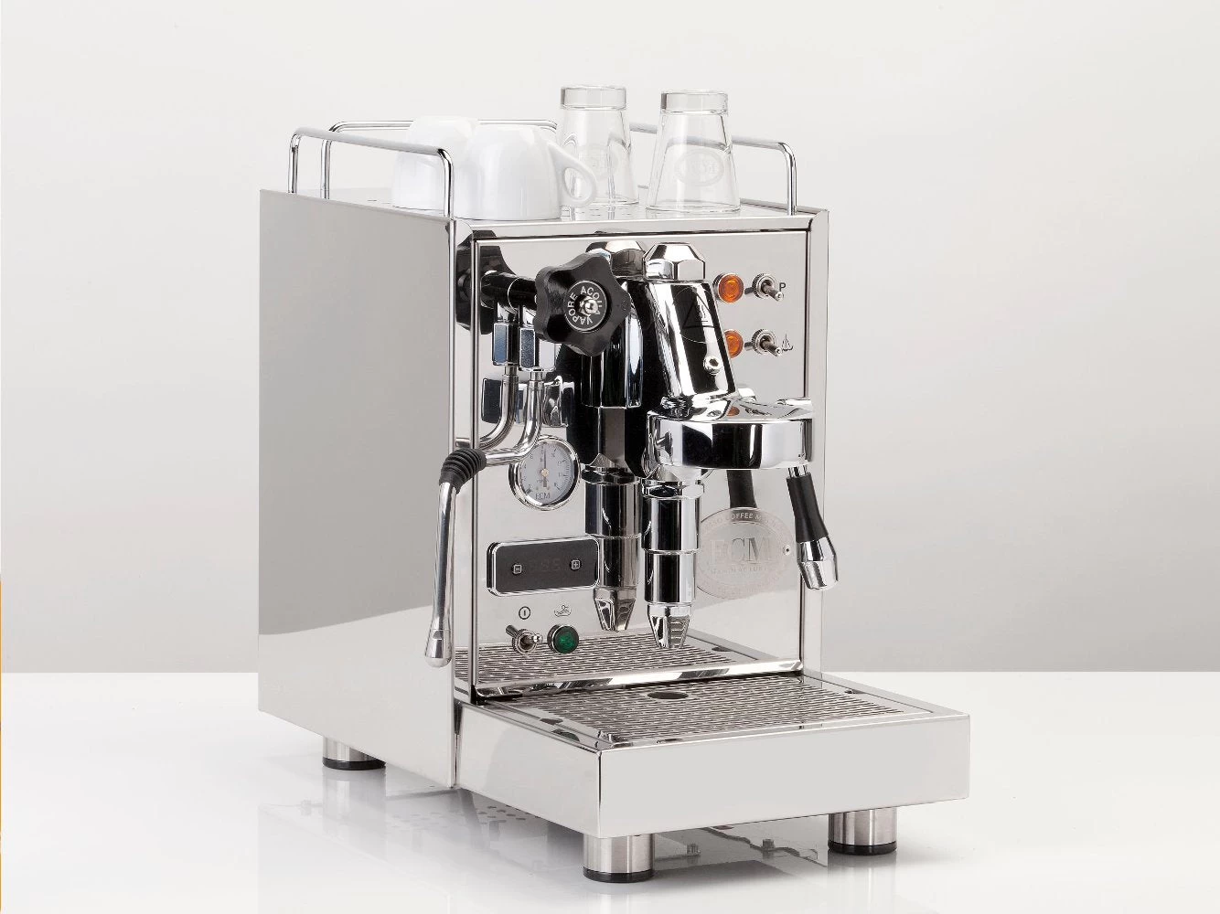 With a custom machined E61 group head and a PID controller, you can expect great temperature stability and the option to adjust brew temperature to bring out more subtle flavors in high-altitude coffee, as well as adjust steam temperature to get the steaming power you like. To complete your set of tools is the easily accessed pump pressure adjustment screw, which can be found beneath the cup tray.