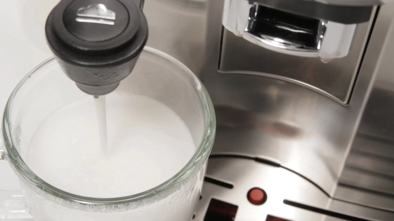 The Cappuccinatore milk frother is an automatic frothing system that siphons milk from a container, froths it, and dispenses it directly into your cup. To operate, simply place your glass beneath the spouts and press the “Milk Froth” button located on the front of the machine. The Cappucinatore can also be used to dispense hot water for drinks like cafe Americanos and hot tea.