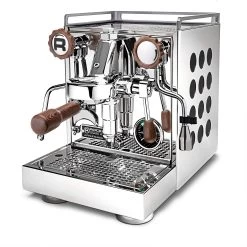 Rocket is a stickler for detail and the Appartamento really highlights that fact. Its hyper stylized steam and hot water knobs feature an easy grip gear design and Rocket’s iconic “R”; the wide feet resemble espresso pucks, and the laser cut side panels reveal a black underbelly, all of which is rounded out by a striking mirror finish. Like any Rocket fan, we’re in love with the aesthetics on this compact machine.