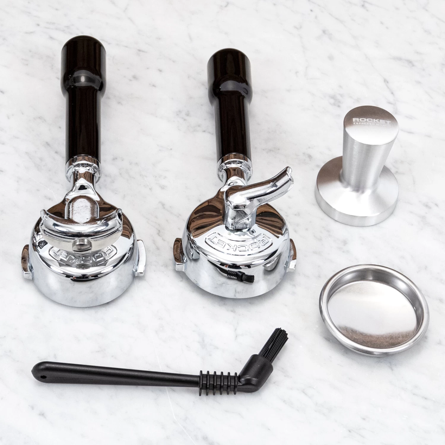 One of the nicest things about buying a Rocket machine is it comes with a really in depth training guide and manual, plus, they’re one of the very few brands to include a high quality metal tamper with their machines rather than a dinky plastic one you’ll never use. The Serie Nera also includes a much needed metal cup railing in the box. For added temperature stability, check out the Giotto or Mozzafiato Type V for PID controlled boiler temp control.