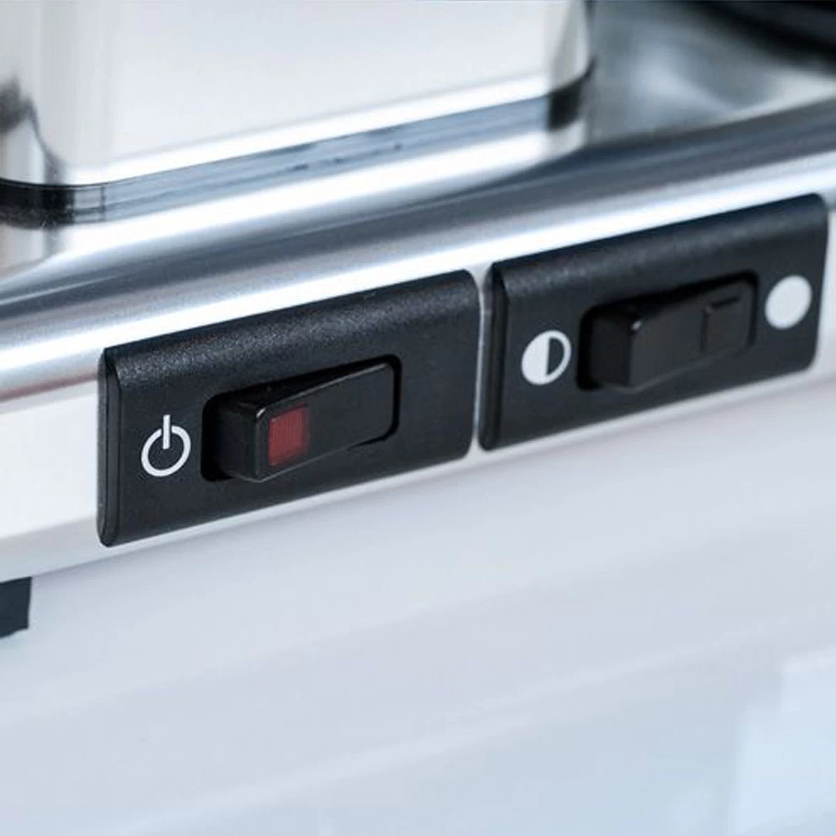 The KB will brew up to 40 oz of coffee in just 6 minutes, and the built-in hot plate will hold temperatures of either 175 or 185 degrees Fahrenheit at your preference, shutting off automatically after 100 minutes. The KB Coffee Maker is constructed of a durable metal housing and BPA/BPS/BPF & Phthalate free plastics.