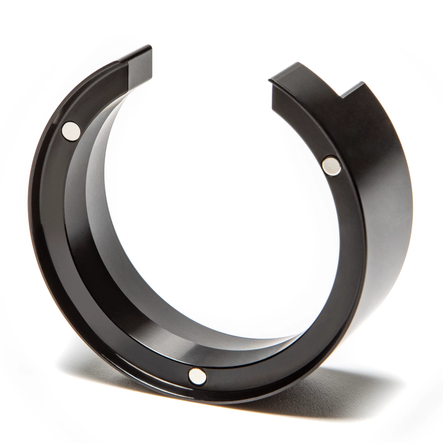 The Wiedemann Precision Dosing Funnel for the Eureka Mignon is designed for direct portafilter grinding from a Eureka Mignon espresso grinder. The high walled design allows for tidier and more efficient prep by preventing coffee from spilling over the edges of the portafilter. On the underside of the ring, a set of three magnets* helps to hold the funnel steady, even whisking for WDT.